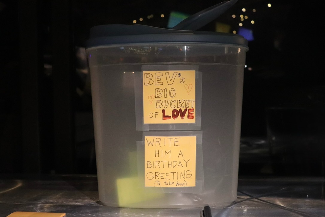 Party-goers even set up a birthday message jar, aptly named “Bev’s Big Bucket of Love,” for Camp to take home with him after the event.